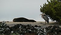 Цапля охраняет сон тюленя. |